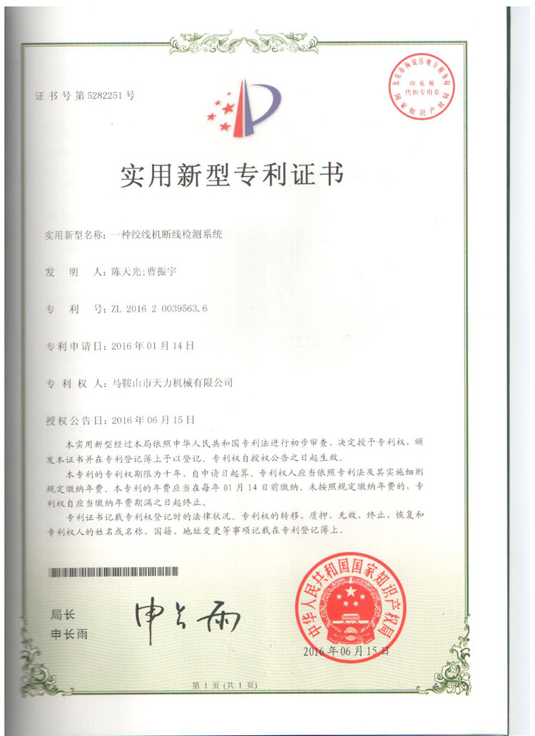 2016年實(shí)用新型專利證書